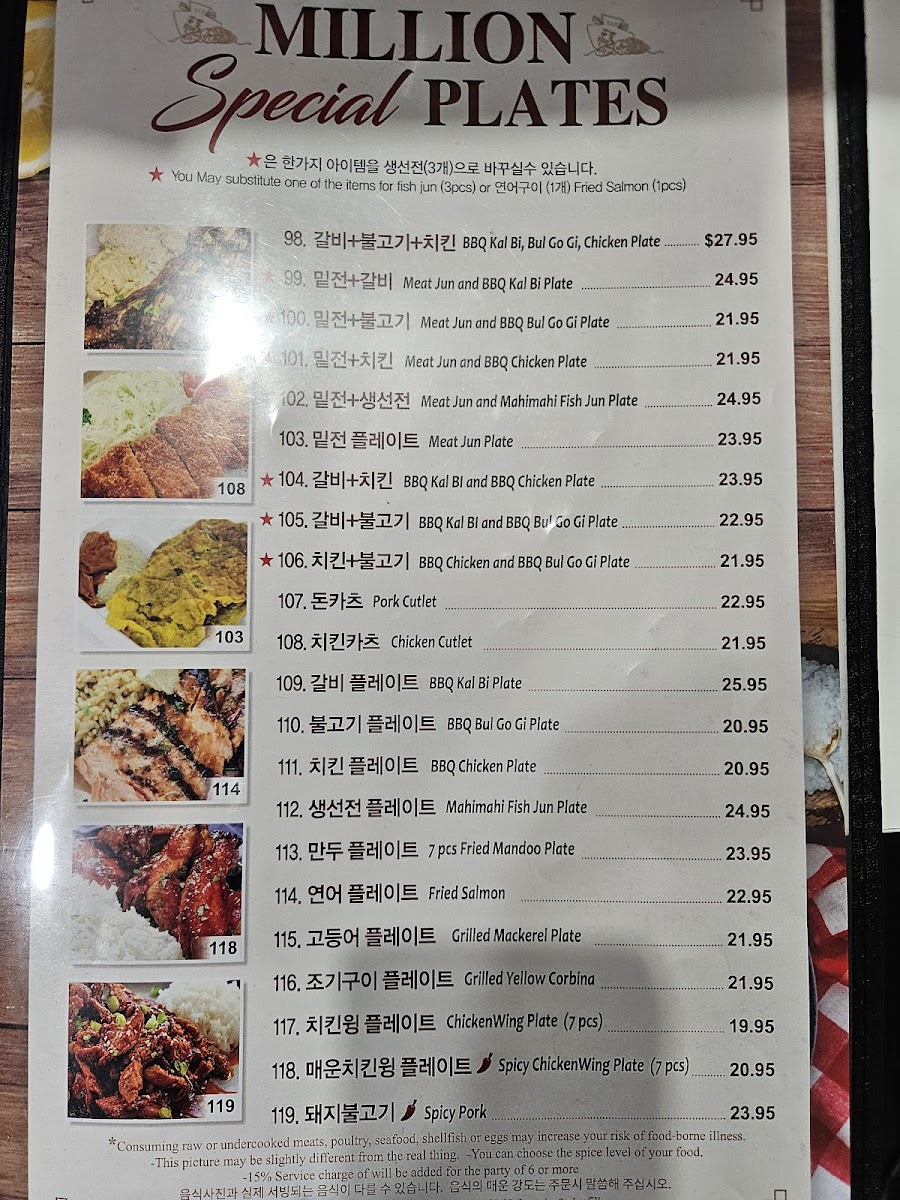 Whether you're dining in or grabbing takeout, guests can expect generous portions of banchan (side dishes) that elevate each meal. With friendly service and a cozy vibe, Million Restaurant stands out as a go-to for hearty, satisfying meals.