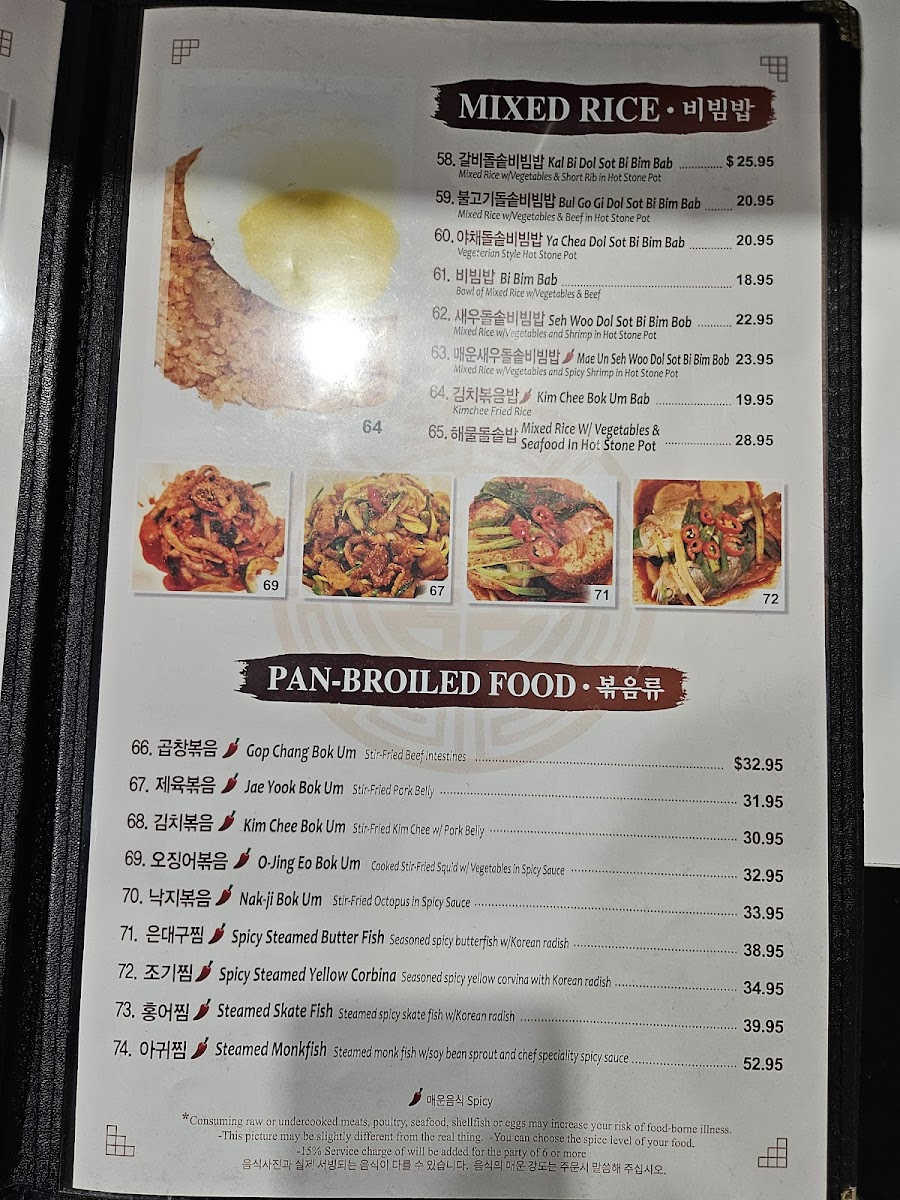 - Bi Bim Naeng Myun - A spicy twist with mixed noodles and BBQ shortribs, also at $28.95.